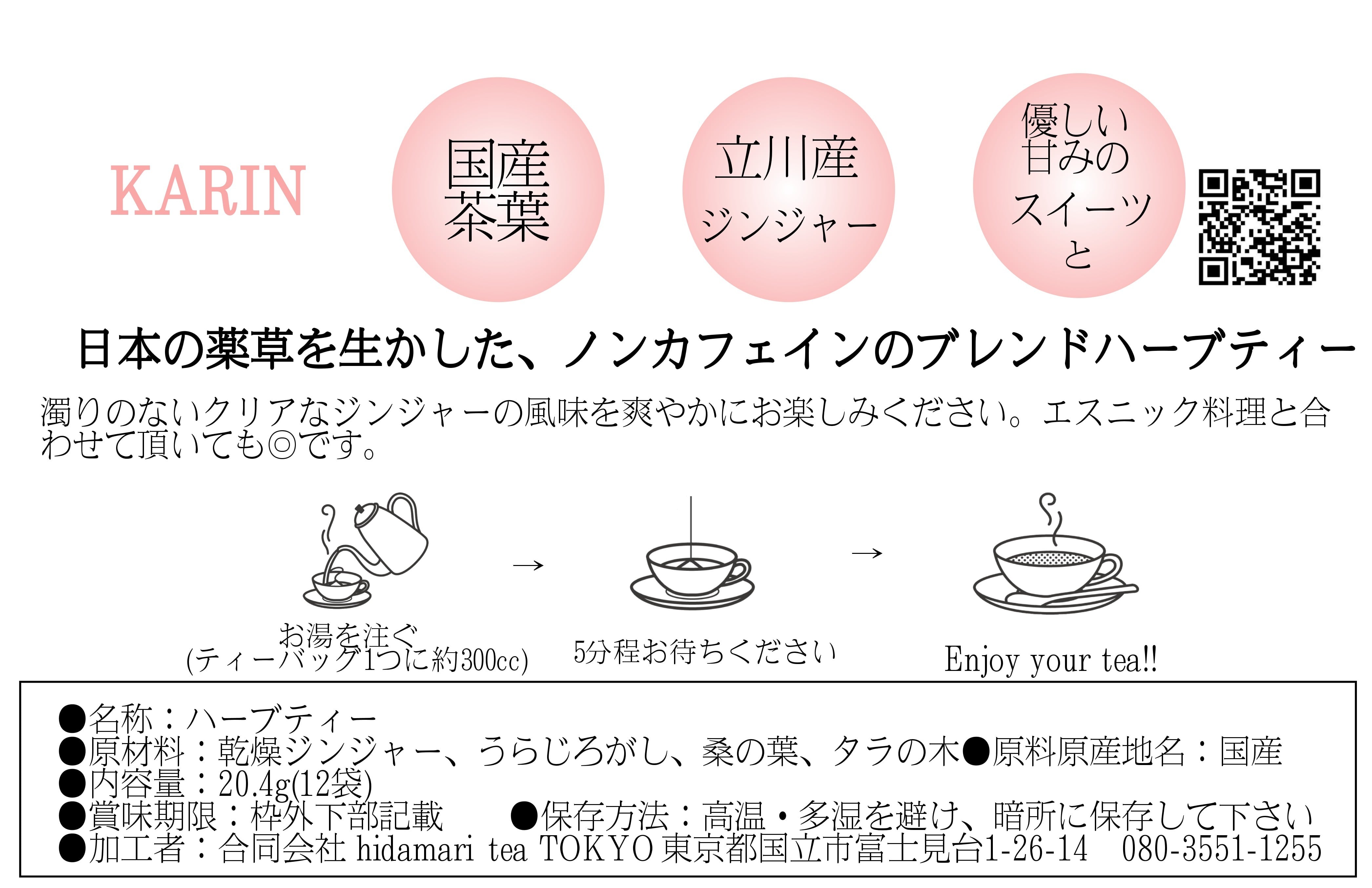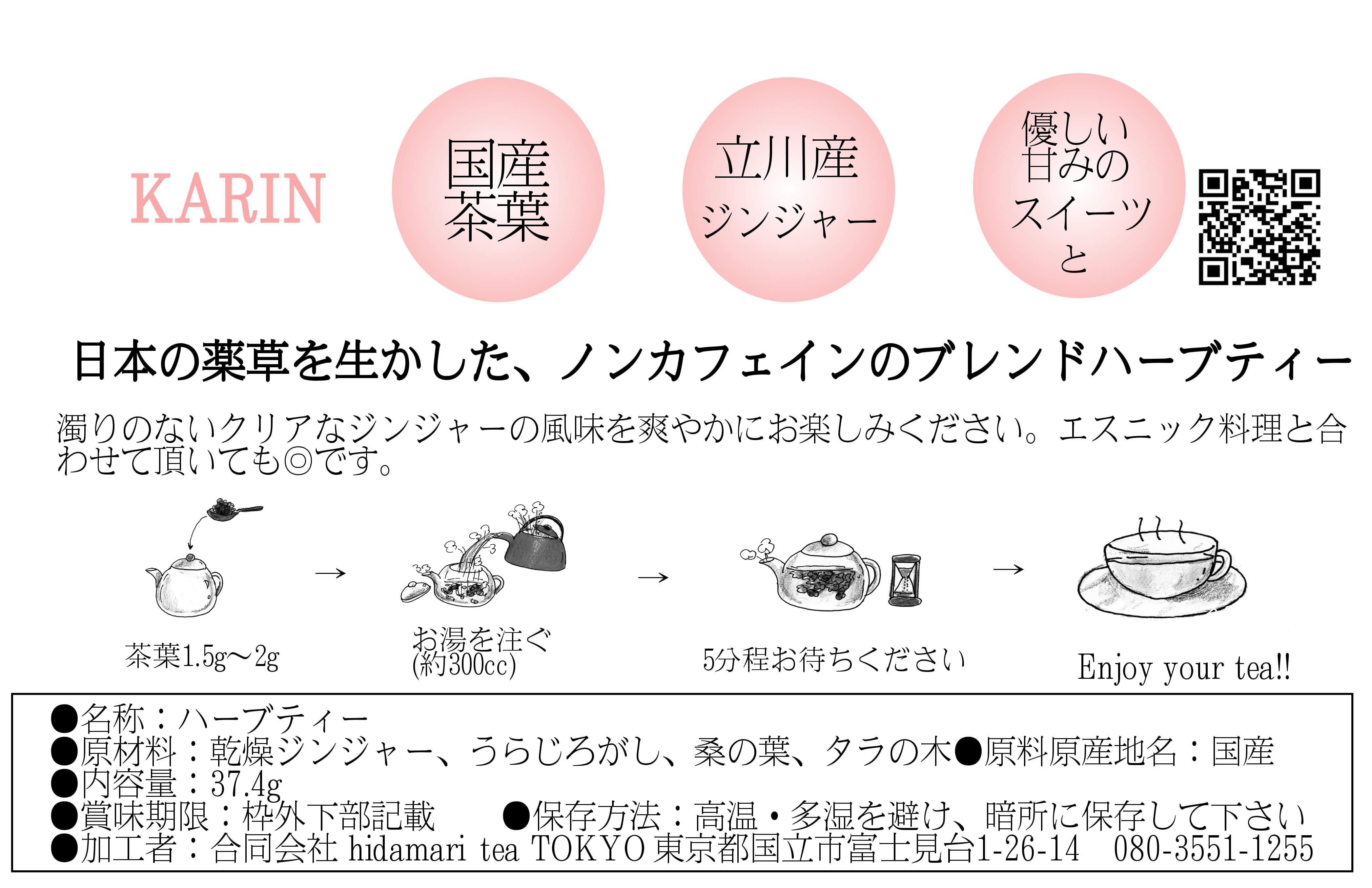 粗めに刻んだ乾燥ジンジャーの刺激的な香りと辛味を活かし、清涼感のあるオオバコとタラの木、まろやかな桑の葉を組み合わせた、爽やかな後味が特徴のブレンドです。